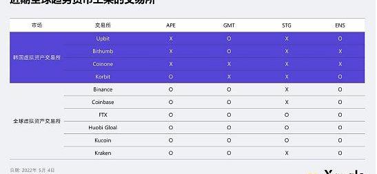 雖然韓國交易所在?2021年上半年上市了DeFi代幣,又在?2022年第一季上市P2E/NFT/元宇宙相關代幣,順應全球趨勢。?但近期在全球出現的熱門代幣GMT和?STG竟然沒有在韓國上市。反而,像是Binance、Coinbase、FTX等全球交易量大的交易所,早在第一時間將市場關注的幣種上架,迅速吸收市場流動性。