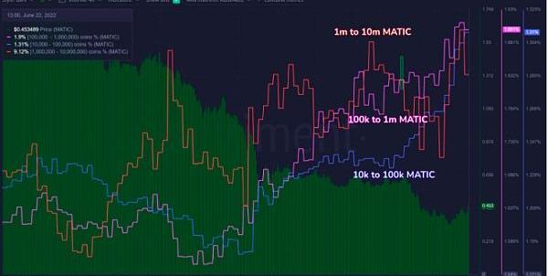 一些分析師還將MATIC最近的反彈歸因于幾周的鯨魚積累。鏈上數據提供商Santiment在推特上表示,持有MATIC的鯊魚和鯨魚在過去六周內一直處于大幅增持趨勢。