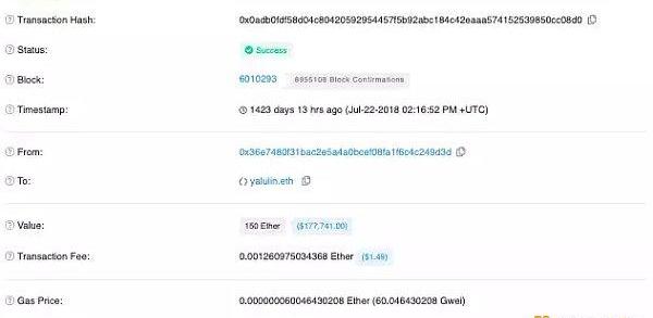 a)在Czhang收到2,000ETH三周后,Czhang于2018年7月22日將150ETH發送給了他的兄弟林亞潞。?