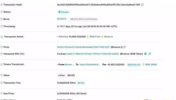 2018年6月29日,謝國梁將10,500ETH轉移到Binance帳號。Binance