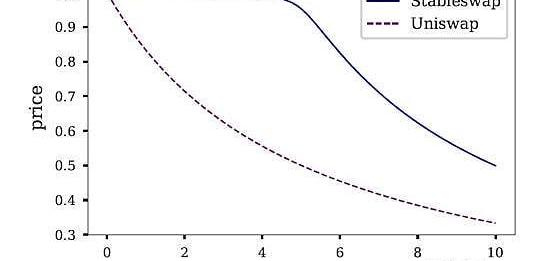 Curve的滑點隨交易額大小的變化對比Uniswap