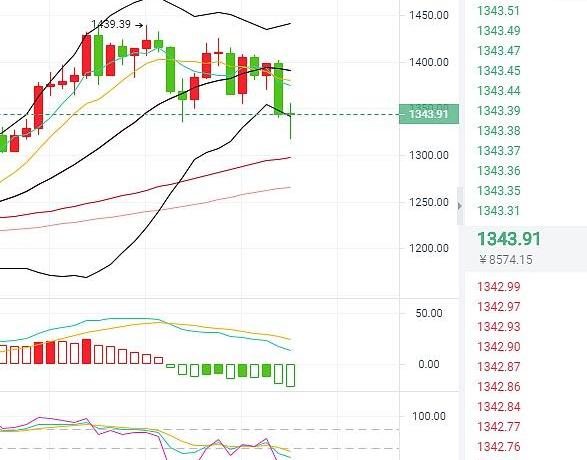 所以綜合來看,日內的行情大趨勢依舊是一個上行的,具體的操作上我們可以在下方1300-1310一線的支撐位進行中線多單的埋伏布局,大趨勢依舊是看漲,上方的壓力位我們可以看到的1380一線的位置,大趨勢看漲,這一點沒有問題,突破以后我們在繼續上看1420一線。