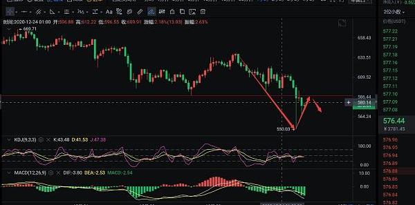 早盤以太深度回踩,幣價一度觸及550一線,主力砸盤非常堅決,從4小時線來看,以太早間跌破了前期的橫盤區間,短期雖然有大級別的反抽,但是4小時仍然以實體陰線收線,空頭情緒仍然在蔓延,目前幣價跌破前期的橫盤區間,下方支撐轉換為壓力位,白盤需要關注以太反彈力度,小時線布林通道快速向下張口,各均線拐頭向下發散,MACD持續放量,以太重心不斷下移,短線技術面仍然偏空,所以早間思路反彈順勢做空。
