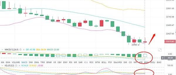 四小時級別圖中,布林帶收口,行情現已逐漸回落至布林帶的中上軌區域運行,現位于22740;各均線均上揚,幣價在五日均線附近波動,有跌至其下方的趨勢;交易量隨著那波漲幅大漲過后也漸漸的走上了正軌;附圖中,MACD快慢線在零軸上方運行,呈現金叉的趨勢,不過技術指標有背離的跡象;RSI和Stoch均轉為下行;由此可見短期走勢以回調為主。