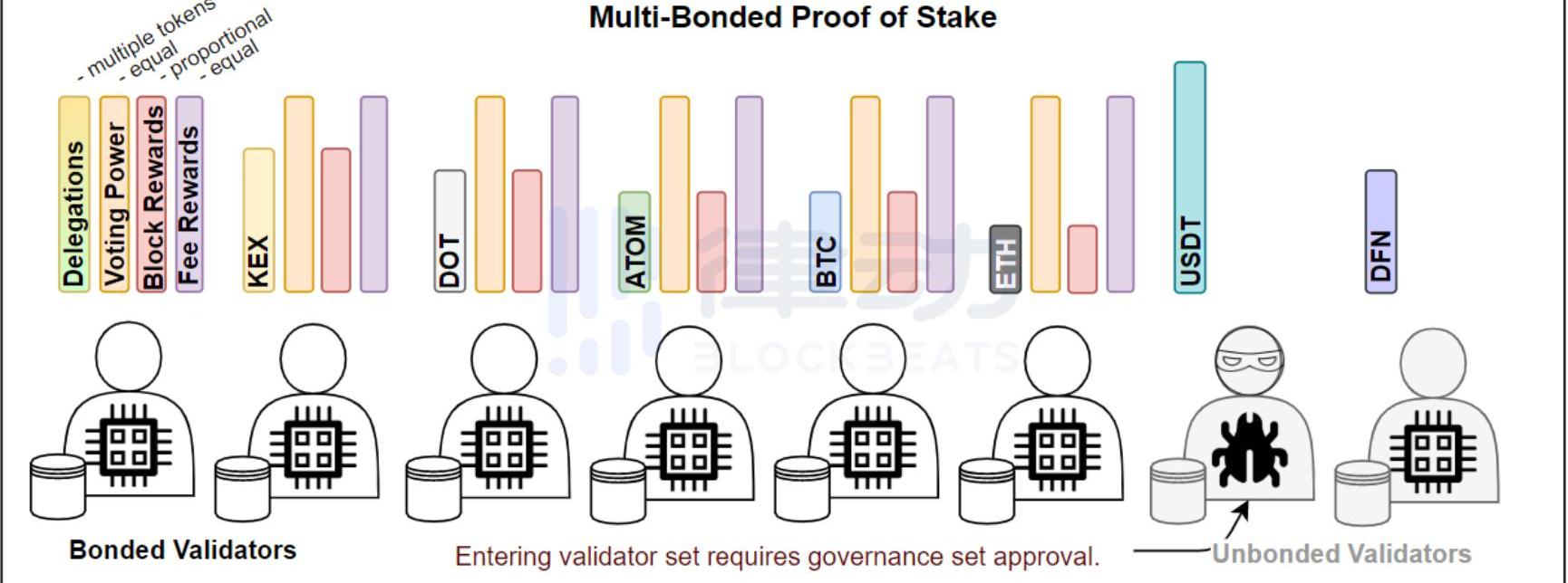 為了解決這個問題,KIRANetwork推出了其創新的MBPoS機制。相較于傳統PoS機制,在MBPoS機制中為網絡提供安全的資產不再受限于此網絡的原生代幣,原生代幣的價格也就不再成為影響網絡安全的因素。在實體資產數字化的大趨勢下,越來越多的資產可被上鏈,那么本質上KIRANetwork的網絡安全上限則是所有鏈上資產的總市值。