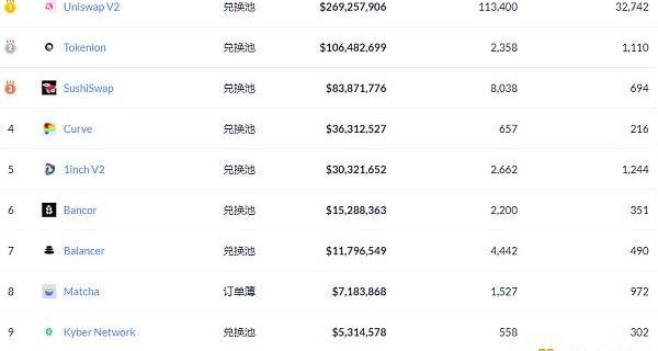交易量排名前十的DEX數據來源:Debank