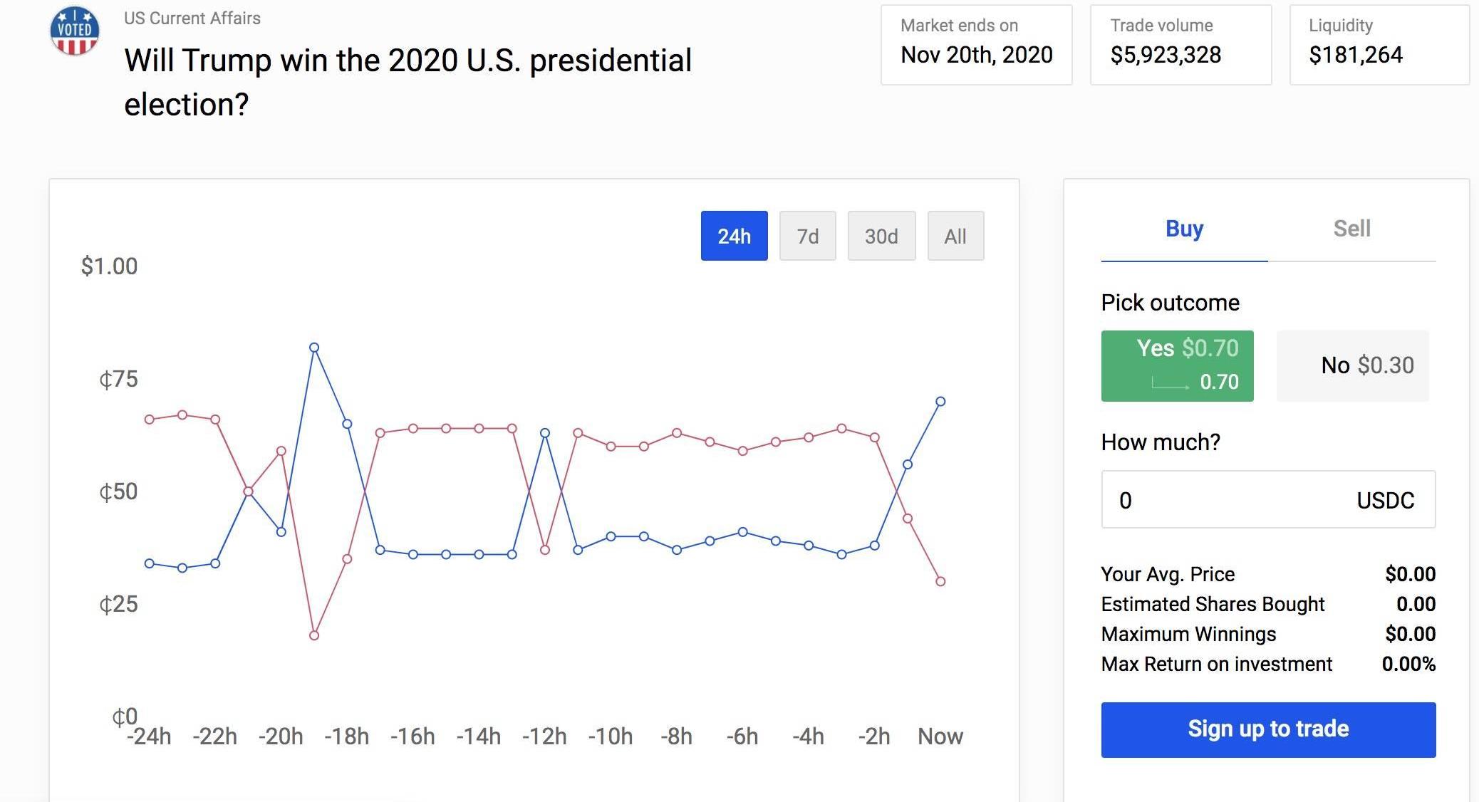 市場:“拜登會贏得2020年美國總統大選嗎?”