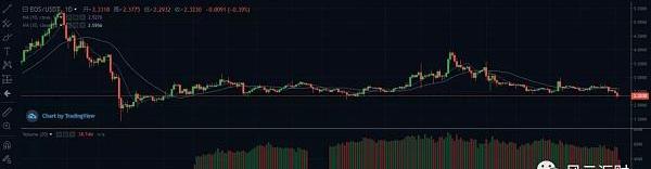 在EOS日線級別,現階段價格位于20日和60日均線下方,進入空頭控盤區域。在MACD上,快線下穿慢線,紅色量柱持續拉長,空頭主力蓄勢進攻。