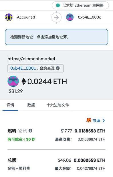 9)針對5個NFT批量測試了Element、Opensea、Blur的Gas費用Element:22.33Element:17.77Opensea:15.59Blur:56.38太貴了,雖然只是預估價格,我還專門買了NFT測試,結果也是是真貴,他的聚合合約邏輯太復雜了。