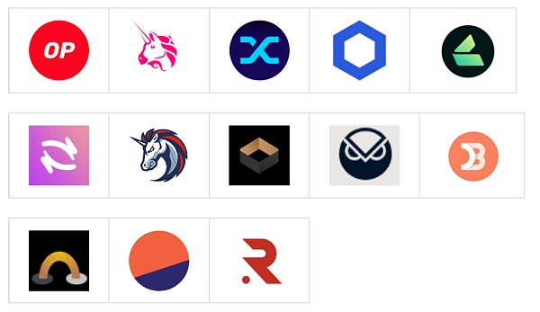 目前,只有申請進入白名單的項目然后才能部署到 Optimistic Ethereum 主網上,已經搭建在Optimism上的項目并不多,主要包括跨鏈橋Optimism Gateway、Hop.Exchange、Celer ?bridge;DEX平臺 uniswap、Kwenta、Rubicon、1 inch;以及期權交易平臺Lyra、合成資產Synthtix等13款應用。