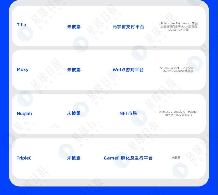 *Stripe以500億美元估值完成65億美元I輪融資,a16z、高盛、淡馬錫等參投3月16日,據官方消息,支付巨頭Stripe宣布以500億美元估值完成65億美元I輪融資,a16z、BaillieGifford、FoundersFund、GeneralCatalyst、MSDPartners、ThriveCapital、GIC、高盛、淡馬錫等參投。高盛擔任此次交易的獨家配售代理,摩根大通擔任財務顧問。此次融資估值較2021年950億美元的估值高點低了約47%。Stripe表示,本輪融資將用于為前員工和現員工提供流動性,并解決與股權激勵相關的員工預扣稅義務。Stripe不需要這筆資金來運營業務。Web3數字銀行及支付公司Ibanera完成1850萬美元融資3月15日,專注于為Web3平臺提供嵌入式支付服務的數字銀行及支付公司Ibanera宣布以1.95億美元的貼現估值完成1850萬美元融資,歐洲支付公司EmerchantpayLimited參投。Ibanera的支付架構可以有效支持下一代基于分布式賬本技術的金融業務,主要覆蓋跨境支付、貨幣兌換、手機銀行和商戶服務,為從事數字資產和NFT業務的企業提供安全支撐,同時也消除了Web3復雜性。據悉,Ibanera于去年四季度推出了數字銀行和支付平臺,可用于支持賬戶資金、支付分配和收款等銀行業務。數字時尚品公司DressX完成1500萬美元A輪融資,Greenfield領投3月14日,數字時尚品公司DressX完成1500萬美元A輪融資,加密風投公司Greenfield領投,SlowVentures、TheArtemisFund、RedDao和WarnerMusic等參投,該輪融資于2月底結束。這筆資金將部分用于改善其數字時尚資產的互操作性,并改善其應用程序和提高NFT市場的性能。DressX專注于可以在Roblox和Instagram等平臺上展示的鏈下數字時尚單品,于去年3月推出其NFT市場并與Crypto.com建立合作伙伴關系。在其市場上出售的NFT可以通過DressX應用程序在增強現實中以數字方式佩戴。穩定幣發行方CNHCGroup完成1000萬美元A+輪融資,KuCoinVentures領投3月15日,穩定幣CNHC的發行方CNHCGroup完成1000萬美元A+輪融資,KuCoinVentures領投,Circle和IDGCapital參投。CNHC計劃利用所融資金擴大其穩定幣的使用,尤其是在亞太地區。為了實現這一目標,該公司正將總部從開曼群島遷至中國香港。CNHC聯合創始人JoyCham表示,CNHC希望成為“香港Web3生態系統基礎和基礎設施的一部分”,并將尋求在更多交易所上線其穩定幣,并擴大其出入金服務。Cham表示,為了實現這一目標,CNHC還計劃為運營、合規和業務開發等部門招聘更多員工。Web3游戲工作室Jungle完成600萬美元種子輪融資,Bitkraft和FrameworkVentures共同領投3月13日,巴西Web3游戲工作室Jungle已完成了600萬美元種子輪融資,Bitkraft和FrameworkVentures共同領投,DelphiDigital、Karatage、FourthRevolutionCapital、Monoceros、32-BitVentures、StatelessVentures、Snackclub和NorteVentures等參投。NFT社交平臺Metalink完成600萬美元種子輪融資,ArringtonCapital等參投3月15日,NFT投資組合管理和社交平臺Metalink完成600萬美元種子輪融資,GuyOseary、GaryVaynerchuk、MoonPay首席執行官IvanSoto-Wright、TheSandbox創始人SebastienBorget、前Coinbase首席技術官BalajiSrinivasan、DJJustinBlau、SocialCapital、ArringtonCapital、SoundVentures、GeminiFrontierFund、DapperLabs的風投部門BallerVC和Genies的HumanVentures等參投。Metalink還推出了其移動應用程序,創建了一個據稱是代幣門控的空間,NFT收藏家可以在這里互動、匯總公告并跟蹤他們的投資組合表現。該應用程序還計劃在今年晚些時候推出交易功能,以便用戶可以買賣和交換數字資產。韓國“虛擬K-pop”元宇宙公司AfunInteractive完成530萬美元A輪過橋融資3月13日,韓國“虛擬K-pop”元宇宙公司AfunInteractive宣布完成70億韓元A輪過橋融資,ShinhanAssetManagement參投,該公司在此前的A輪融資中募集到100億韓元,當時投資方包括CJInvestment、CompanyKPartners和CJENM。AfunInteractive目標是成為韓國頭部元宇宙公司,其首席執行官DokyunKwon對虛擬娛樂和元宇宙市場充滿熱情,希望利用3D內容制作技術構建角色IP化的“虛擬K-pop”,目前已推出了“Apoki”和“Lesha”等虛擬明星。GigaStar完成480萬美元種子輪融資,DVCryptoVC等參投3月18日,創作者經濟初創公司GigaStar完成480萬美元種子輪融資,DVCryptoVC、TomsicHoldings、NamelessVentures和BelvedereStrategicCapital參投。據悉,GigaStar通過利用區塊鏈技術讓創作者獲得更具創新的互動方式,包括粉絲激勵、潛在長期版稅等,目前主要支持YouTube創作者并通過推出頻道收入代幣(CRT)幫助頻道獲得收入。區塊鏈保險科技初創公司Vitraya完成410萬美元A輪融資,Xceedance參投3月15日,區塊鏈保險科技初創公司Vitraya宣布完成410萬美元A輪融資,Xceedance和一家未透露名稱的投資財團參投。Vitraya主要利用人工智能和區塊鏈技術為保險公司實現支付完整性、醫療程序和福利管理的自動化服務,幫助醫院/醫療保健服務提供商、以及為消費者和企業提供健康保險產品的保險公司實現實時支付和理賠。初創公司SoulWallet完成300萬美元種子輪融資,StruckCrypto參投3月16日,字節跳動前產品經理的初創公司SoulWallet完成300萬美元種子輪融資,StruckCrypto參投,將推出基于ERC-4337構建的在線自托管以太坊錢包。目前正在進行內部測試,計劃于Q3或Q4上線。據悉,SoulWallet曾參與以太坊研究長期資助Grant。比特幣去中心化交易所Alex完成250萬美元融資,TrustMachines參投3月14日,比特幣去中心化交易所Alex完成250萬美元戰略輪融資,TrustMachines和GossamerCapital參投。除了去中心化交易所,Alex還提供質押、收益農業和啟動板服務。此次籌集的資金將用于繼續在比特幣