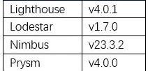 以下客戶端版本支持以太坊主網上的上海&Capella升級,之前的Shapella版本僅支持測試網部署,與主網升級不兼容。在選擇運行哪個客戶端時,驗證者應該特別注意在執行層和共識層上運行多數客戶端的風險。可以在此處找到對這些風險及其后果的解釋,在此處找到對當前執行層和共識層客戶端分布的評估,以及從一個客戶端切換到另一個客戶端的指南。1、共識層主網發布