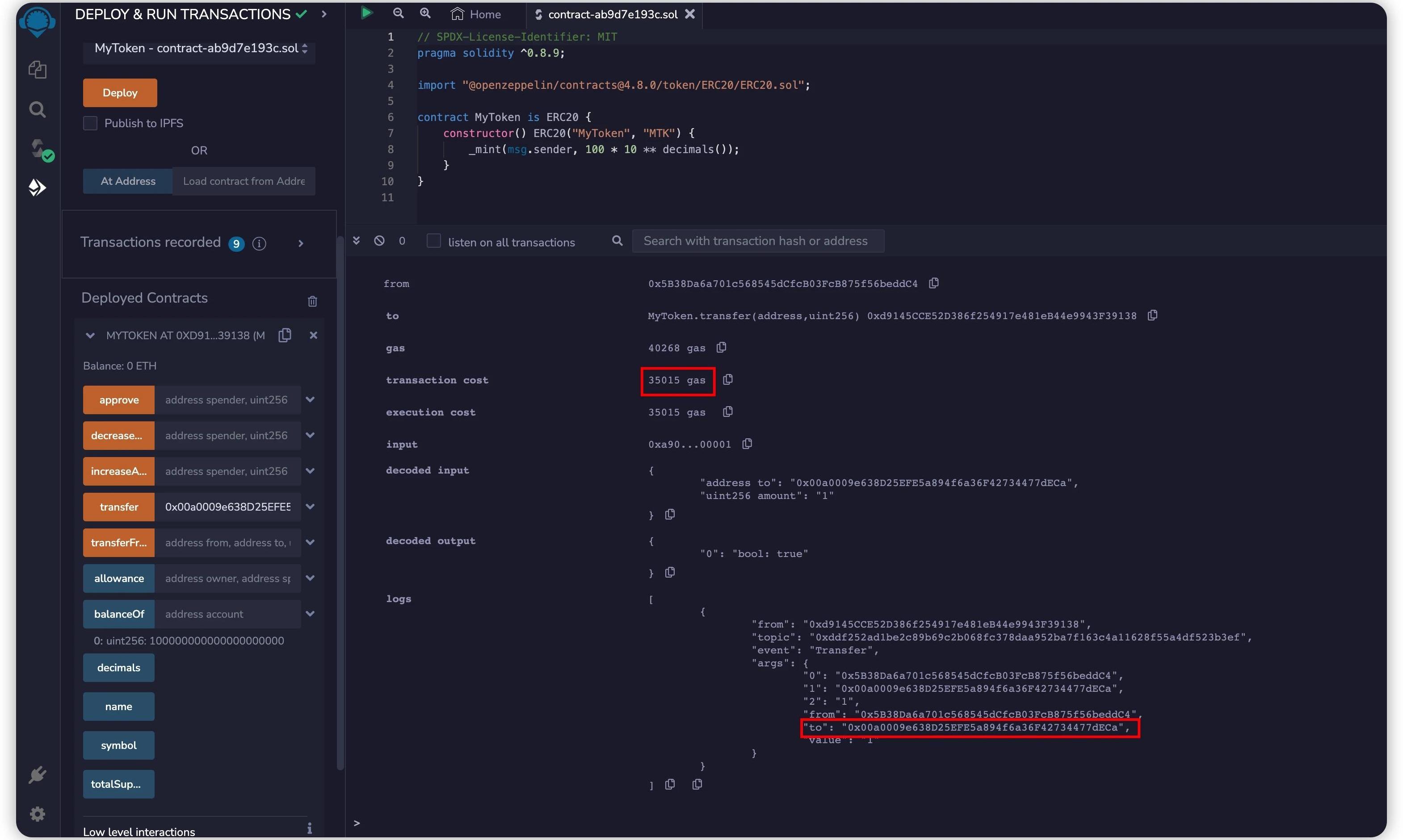 每次使用0字節代替非0字節時,就可以節省16個Gas,因此,每次在msg.data中用一個0字節代替一個非0字節,都將給我們節省12個Gas。在以太坊中,地址是由0x開頭的40個隨機字符的16進制字符串,當以16進制形式查看字節串時,由于每對數字構成一個字節,所以單個16進制的0,或相鄰的0分布在兩個不同的字節中,不會減少字節串的漢明重量,所以只有連續2個16進制的0才會減少漢明重量。0字節的排序對所產生的Gas優化也沒有影響。在ERC20的transfer()函數中,msg.sender的漢明重量沒有區別,而作為transfer()函數的一部分傳入msg.data的_to地址參數就有區別。使用OpenZeppelin的StandardToken作為參考實例。向一個沒有0字節的地址進行標準轉賬需要花費35039Gas,然而向一個有4個0字節的地址進行轉賬只需要34991Gas,他們相差了$35039-34991=48\\,Gas$。而我們前面說到每次使用0字節代替非0字節時,可以節省12個Gas,這里的48Gas可以表示成$4\\times12=48\\,Gas$,和我們從黃皮書中得到的期望值一樣。