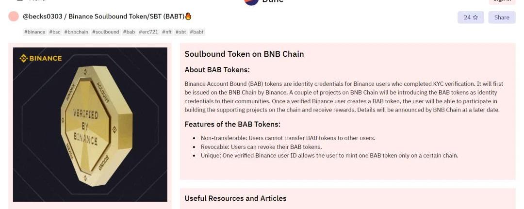 圖7:BinanceSoulboundToken/SBT(BABT)3.3GameFi