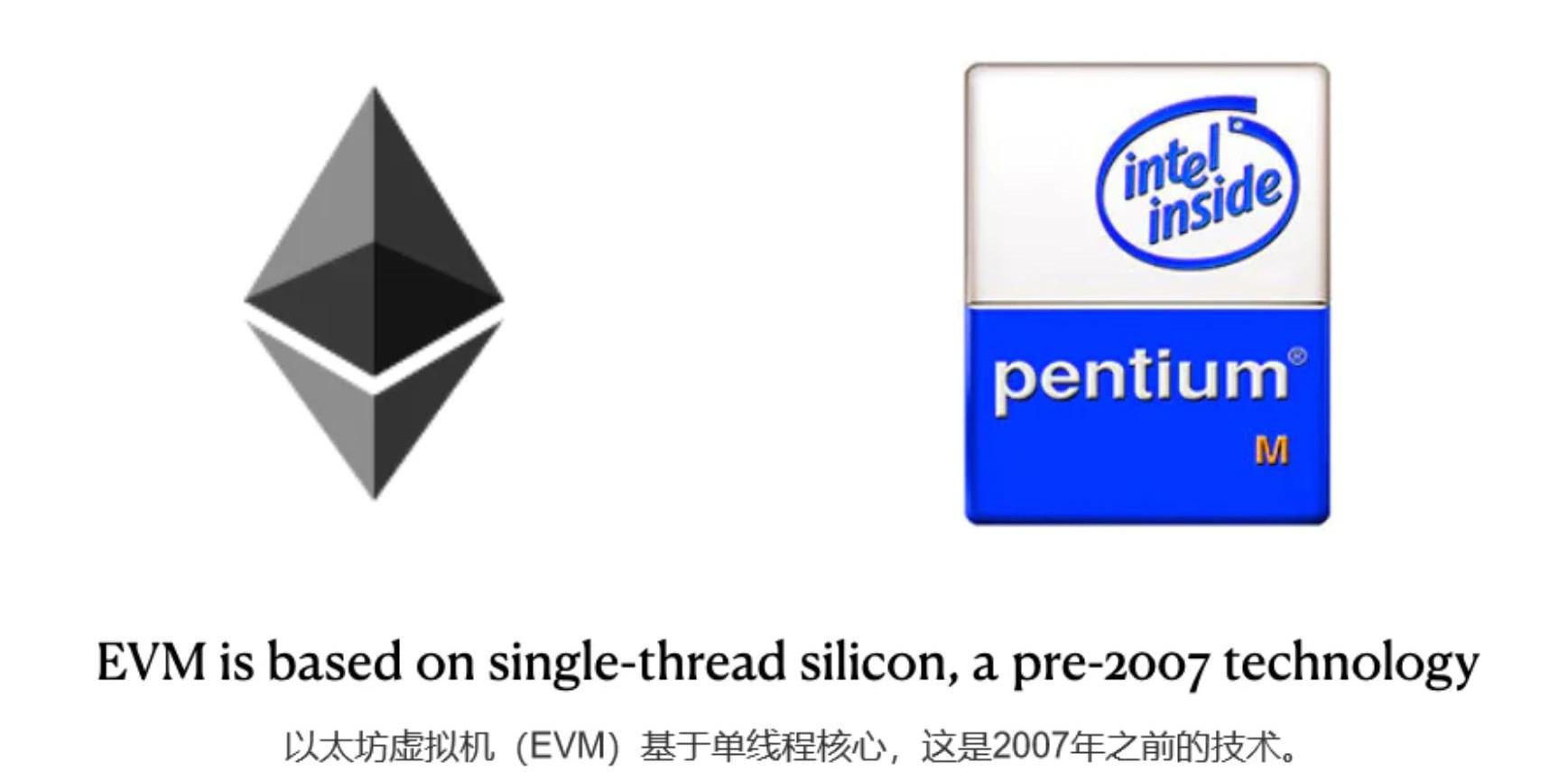 Solana并沒有通過一些圖靈獎的魔法來實現TPS。相反,Solana在性能和可靠性之間做了一系列的設計權衡。我們將在第一部分討論Solana的性能,在第二部分討論可靠性的成本。設計選擇1:并行計算。以太坊虛擬機是單線程的——EVM只能利用一個CPU核心來按順序處理交易。由于單核產生的熱量隨著速度的提高而呈指數級增長,物理學限制了單核性能的上限是很低的。解決方案是什么?更多的核心!八個2GHz的核心比一個8GHz的核心溫度要低很多,但也更強大。2007年,英特爾推出了雙核的奔騰處理器,從而結束了單核時代。今天的計算機消費者擁有的GPU和CPU有4到4096個核心。讓更多的核心合作得更好,而不是擁有更強大的單核,已經成為了十多年來半導體行業的研究重心。