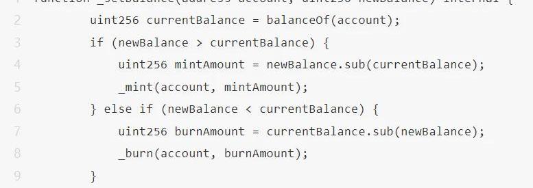 而無法使用的函數大概有20個,而清除管理員權限最重要的是清除掉Mint出新的token的方法,整個3000行代碼里,僅有_setBalance是調度Mint權限的,當然雖然他沒有出現onlyOwner符號修飾他,是因為他是個internal的方法,這種外部無法調用,僅能被合約內已經定義好的方法調用