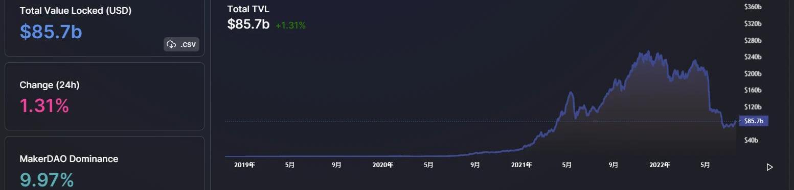 伴隨行情端反彈,整體TVL出現上升9.28B,上升幅度達12.14%,基本趨同于BTC漲幅,遠不及本周ETH的增長。各公鏈TVL占比情況