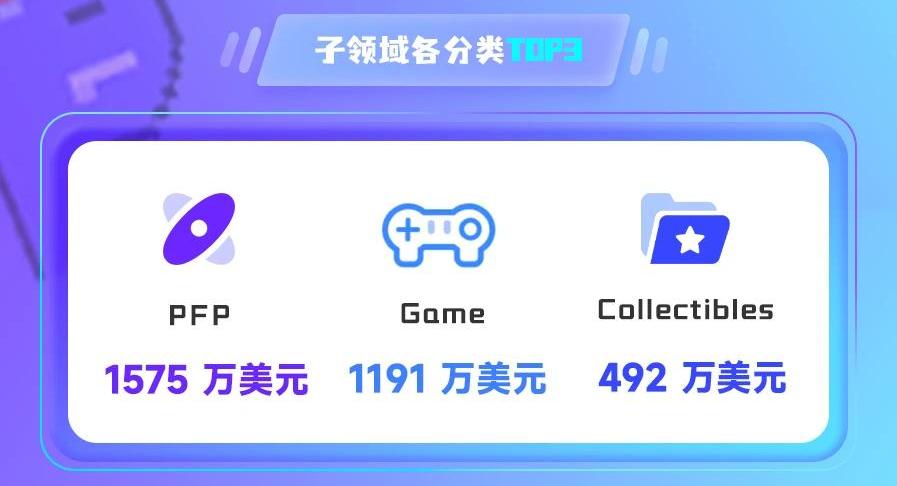 按過去24小時成交量,排前三的子領域分別為PFP、Game和Collectibles。