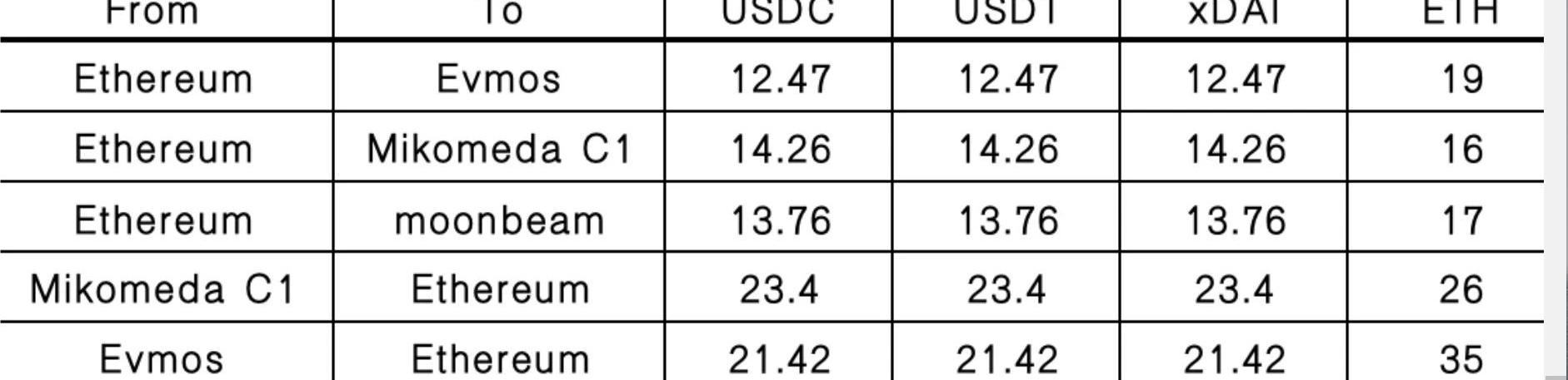 rollup與L1轉移用戶在Hopprotocol發送從Op鏈上的贖回ETH請求,Hopprotocol告知Bounder,Bounder確認墊付資產,在Layer1上發送ETH給用戶,用戶立即接收,挑戰期結束,Bounder獲得Layer1提現的ETH。此時需要與Layer1交互,Bounder因為有了競爭,需要自己給gas費用,為了降低成本會將多筆交易雜糅到一筆,因此完成交互需要的時間不定。Hopprotocol有三個重要的角色:AMM:作為自動化做市商,為不同跨鏈提供流動性。Bridgecontracts:負責為網絡轉移,提供流動性。Bounder:為有挑戰期的鏈進行墊付。費用