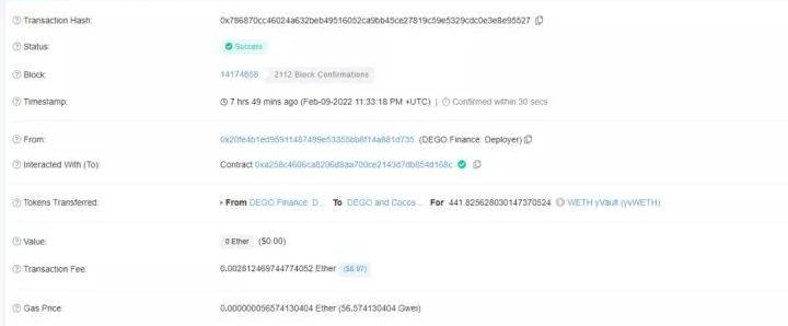 4然后將DEGO.Finance:Deployer賬戶獲取的378個ETH轉給了0x118地址。