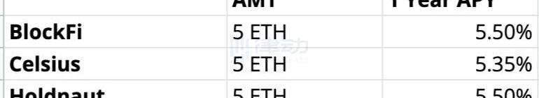 你可以將自己的ETH借給公司,比如CelsiusNetwork、BlockFi、Hodlnaut等。他們再將其借給對沖基金、交易平臺和機構交易員等,這就是你收益的來源。我在下圖中計算了基于5枚ETH的年化收益。