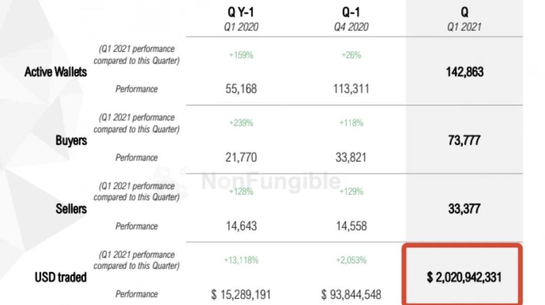 NFT是區塊鏈領域的一個新爆發點,被認為是區塊鏈技術最容易出圈的發展方向。2020年至2021年,NFT大放異彩,根據NonFungible.com報告顯示,2021年第一季度NFT銷售額突破20億美元,流通總價值已經超過2020全年。NFT確實是充滿著魔力,發展的勢頭迅猛。