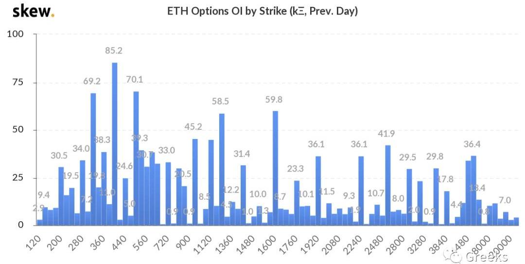 從OptionFlows數據看,今天以太坊繼續以看跌期權成交占據了絕對多數,占比超80%,但是賣出看跌略強于買入看跌,其成交IV也不高。大宗交易較少,主要是中短期平值期權,今天的成交結構和比特幣完全不同。