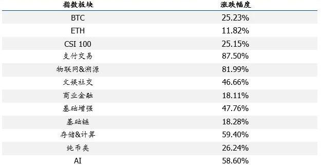 四、上周行情回顧:ChainextCSI100上漲25.15%,細分板塊中支付交易表現最優
