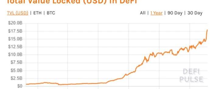 總鎖倉價值2020年是DeFi發展突破性的一年。這些DApp中的TVL從2020年初的6億美元飆升到年底的150億美元,漲幅高達24倍。