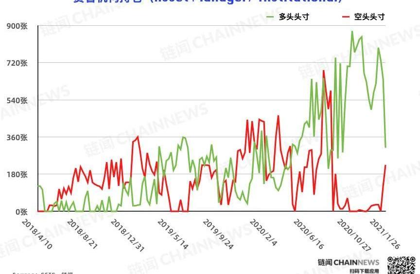 XRP/HKD+2.82%編者按:本文來自鏈聞ChainNews,星球日報經授權發布。1月30日,CFTC公布了最新一期CME比特幣期貨周報,最新統計周期內BTC出現了約6000美元的大幅回調,并一度跌破30000美元整數大關,這也是時隔半個多月后BTC首度跌回至30000美元下方,雖然隨后幣價有所反彈,但是統計周期內明顯的下降趨勢未能得到有效逆轉,市場又一次陷入到了止漲轉跌的焦慮情緒之中。總持倉數量在最新一期數據中自11945張進一步回落至10787張,行情的大幅回調并不意外地引發了市場又一輪的減倉潮,而隨著連續兩個統計周期的倉位減持過后,目前市場總持倉量又一次回到了整整一個月前創出的近15周低點附近。