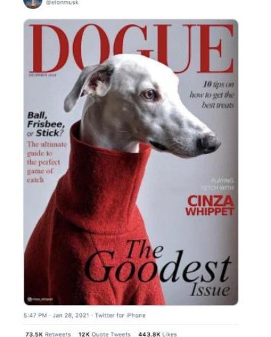 “知名喊單人”、2019年愚人節狗狗幣CEO馬斯克也開始為狗狗幣站臺,上周四在推特上發了一張狗狗的藝術照,表達自己對狗狗幣的支持。