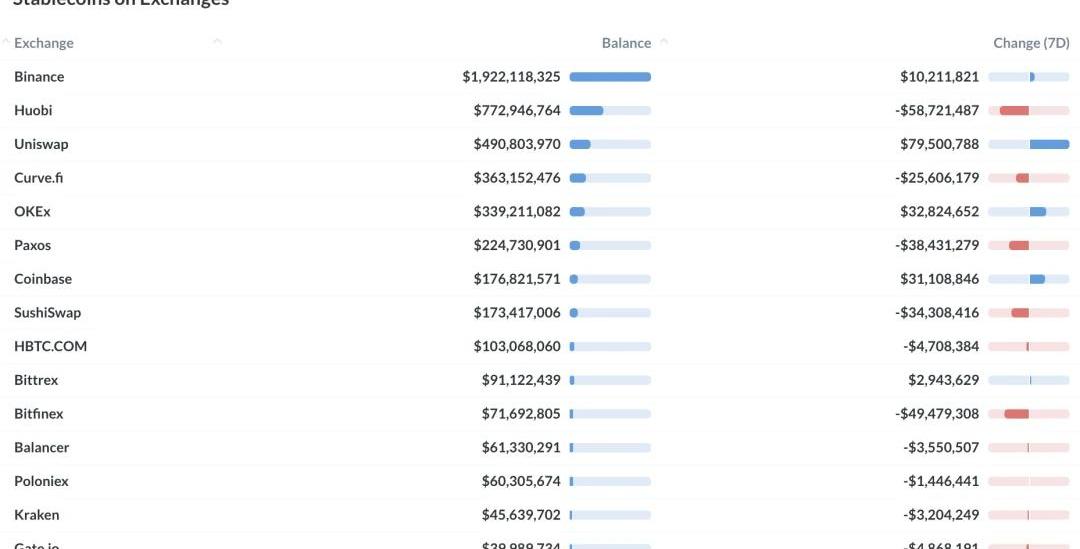 根據Nansen的統計,目前,Binance、Huobi和Uniswap是三大穩定幣交易市場。值得關注的是,在穩定幣交易量前15的市場中,有4個DeFi平臺,除了Uniswap以外,還有Curve、Sushiswap和Balancer。
