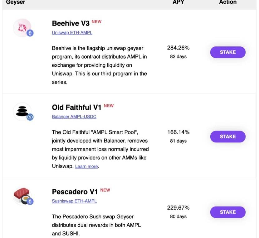 AMPL合理的市值回歸在此過程中AMPL的價格變化會很快速,大量的增幣會被拋售出去,一旦用戶和資金支撐不起這龐大的市值,那么AMPL的價格又會很快下跌,再到進行減幣的階段。如此往復,AMPL最終會回歸到真正的價值上。AMPL近期開始上漲了,我們來看下和AMPL上漲相關的三個原因。AMPL在3大DEX開啟間歇泉獎勵
