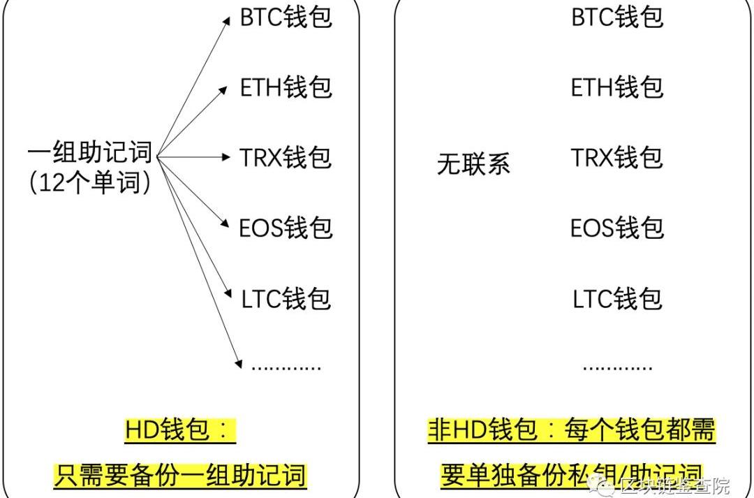 這里再做個拓展補充:前面鑒叔推薦的比特派和imToken都屬于「HD錢包」,而HD錢包的特點就是使用一組助記詞去控制多條鏈上的資產。換句話說,你不用單獨去保存比特幣錢包的私鑰,以太坊錢包的私鑰,EOS錢包的私鑰,波場錢包的私鑰。使用HD錢包,只需要記一個助記詞就可以了。