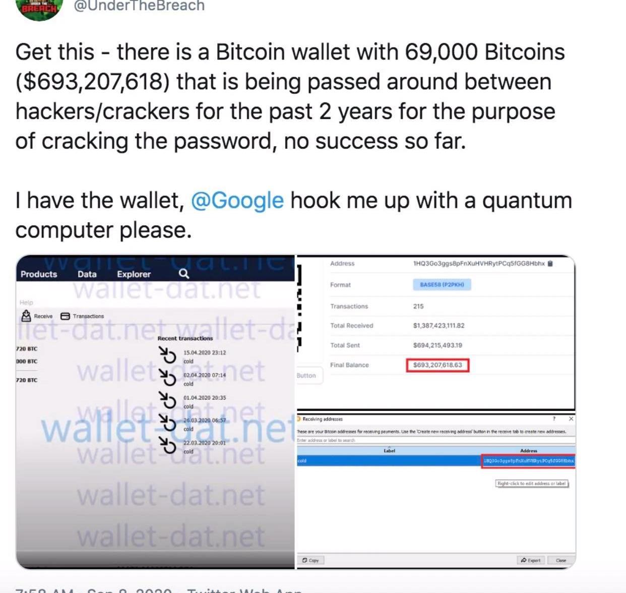 截至目前,關于誰控制了這些比特幣仍然是一個未知數,CipherTrace甚至沒有排除黑客攻擊的可能性:“這些資金的移動,可能意味著錢包所有者將資金轉移到新地址,以防止黑客訪問wallet.dat文件,或者說黑客已經破解了這個文件。”據悉,絲綢之路的資金就藏在一個錢包里,而這個錢包已在黑客圈流傳了兩年多的時間。今年9月份,一名Twitter用戶聲稱擁有了這個wallet.dat錢包文件,并向加密貨幣社區征求訪問這69000多個比特幣的解決方案,其甚至還建議使用量子計算機來破解私鑰。