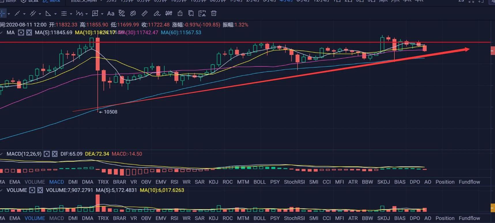 這也讓很多只看著主流幣的“老韭菜”開始懷疑自己,自己是不是真的跟不上時代了?實際上并非是自己不知道當前哪方面才是熱點,但是這些所謂的熱點自己也不是沒有看到過,17年的ICO和近年來的山寨幣,哪個不比DeFi項目代幣瘋狂,當初也是哪個熱門追哪個,但當前實在是沒這個心思,因為之前的結果往往都不是那么好。其實這就是所謂“老韭菜”的成長,這種情況自身經歷過,也明白其他人興奮的點在哪里,但依然能保持平靜,讓你說理由也說不清楚,但本能的認為,這個當前收到市場熱捧的或許沒有大家說的那么好,其實這就像我們看盤看多了一樣,什么時候位置走到哪里了你會覺得不對勁,那個就叫盤感,而當前對于幣市發生事件的冷靜,或許可以叫做“幣覺”吧。現在DeFi確實很好,漲勢很喜人,市值增長的很快,我們也很看好圍繞著DeFi做文章,但是該冷靜的時候一定要冷靜,或許說,一定要摒棄掉泡沫參考實際價值來投資。當前市面上所謂的“新韭菜”由兩部分組成,一部分是項目方或者是項目從業人員在帶節奏,為DeFi搖旗吶喊,配合著拉盤。另一部分就是看到幣價上漲聞風而動真正的投資者,他們上車或者關注以后,也直接坐穩了立場,要么開啟群嘲模式,要么鼓吹幣值,如果說最后真的是泡沫崩潰,損失最大的也是這部分人,但是當時喊得最厲害的更是這部分人。其實哪有所謂的新韭菜,都是幣圈內的存量資金轉移,關注到新項目就是新韭菜了?不至于。或許這部分新韭菜是認為自己可以及時跟上市場的節奏吧,但是也不要忘了新項目的割韭菜目標也是這部分人,沒有什么“撐死膽大的餓死膽小的”這種說法,按照自己的計劃自己的預期來走才是最重要的事。收益肯定是和風險相伴而且成正比的,收益越高,風險也越高,到最后無論結果怎么樣自己能接受就是了,也不必去理會那些什么遲早崩盤的話語。對于老韭菜來說更是如此,其實當前主流幣漲勢雖然不如DeFi項目代幣,但最近的收益其實非常不錯,特別是篤信牛市的投資者。一方面屏蔽掉那些自己覺得無價值的聲音。另一方面也少好為人師的去教導新人,完全是吃力不討好的事,很多事都要自己經歷過才知道,也只有自己才能對自己負責,而且有些老韭菜只是占了個“老”字,本身還是韭菜。一個有活力的市場就是這樣的,有開拓新興事物的人,也有恪守傳統的人,沒有誰更偉大,只是做好自己的分工,前者做好了可以賦予市場更多活力更多可能性,也是市場發展的必要元素。而后者是在前者失敗時保持市場穩定的定海神針,始終保持著土壤肥沃,孕育著新興力量,二者都是市場不可或缺的一部分。回到行情上,昨晚插針后,今天上午開盤時一度回到11900美元上方,可惜還是沒有站穩,再次從11900上方滑落下來,當前已經到11700美元附近,日內進行持續回調。看了一下宏觀市場,果然是黃金在搗亂,當前黃金價格持續回落,最低時已經觸及2000美元整數關口,所以我們之前說的本周比特幣要特別注意宏觀因素邏輯顯然還是成立的。可以看一下行情的4小時級別,自8月2號以來行情從12100美元跌至10500后,一直處于幅度比較小的穩步上行中,可以很明顯的看出來,高點和低點都是在同步抬高的。