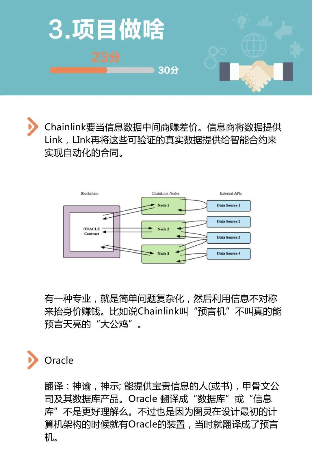 Oracle翻譯:神諭,神示;能提供寶貴信息的人(或書)。Chainlink要當信息數據中間商賺差價。信息商將數據提供Link,LInk再將這些可驗證的真實數據提供給智能合約來實現自動化的合同。Chainlink數據由API提供,比競爭對手用戶提交后投票的模式可靠性和效率都要高。關鍵技術先進還上線成功來。根據Github,共103個代碼倉庫,提交代碼的人數53人,項目分支有多達137個。ICO募集了大約3200萬美元,根據Aicoin,LINK目前市值排名前十。LINK正處風口中,團隊雖不太忙,但活好。雖然中心化金融機構尚未沒落,但去中心化的DeFi正熱,農村包圍城市,對手犯錯或是機會。幣價較高,回調后更安全。風險提示幣值提升過快,就投資而言,追高風險大。吳說評測室:全盤解析Filecoin74分展望中性偏正面吳說評測室啟動項目評測標準解析
