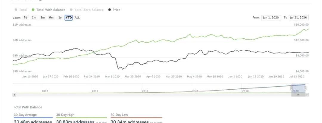 截止目前,比特幣仍然是2020年收益率最高的資產,其收益率達到了52.33%,超過了黃金的27.51%,更是遠遠超過了標普500和上證綜指。而此次比特幣破萬僅僅是一次偶然事件么?事實并非如此,其實在大漲前,比特幣的各類指標就已顯示出上漲信號,具體分析如下:事實上,在過去幾周,除了價格以外,比特幣在大多數方面都非常活躍。在新聞方面,比特幣獲得了多個主流媒體的認可。PayPal證實,自3月以來,它一直在研究增加加密貨幣買賣服務的計劃。萬事達卡授予總部位于倫敦的初創公司Wirex主要成員的資格,使其有權在萬事達卡的網絡上直接發行支持加密貨幣的卡。最近美國銀行獲得為加密貨幣提供托管服務的批準。最后,讀這篇文章的人可能都已經知道,奧巴馬、埃馬斯克等人的推特賬戶被黑,讓用戶向騙子的地址發送比特幣的事件。盡管在短短幾周內就傳出了這些有關比特幣的消息,但其價格卻一直停滯不前,在9000美元到10000美元的區間徘徊了大約90天。比特幣價格的這種不尋常的穩定,導致其30天的波動率在歷史上第二次跌破20%。盡管價格顯著停滯,但關鍵的鏈上和衍生品指標一直閃爍著活躍的跡象,這些指標表明了比特幣投資者在如何定位,以及接下來可能發生的事情。