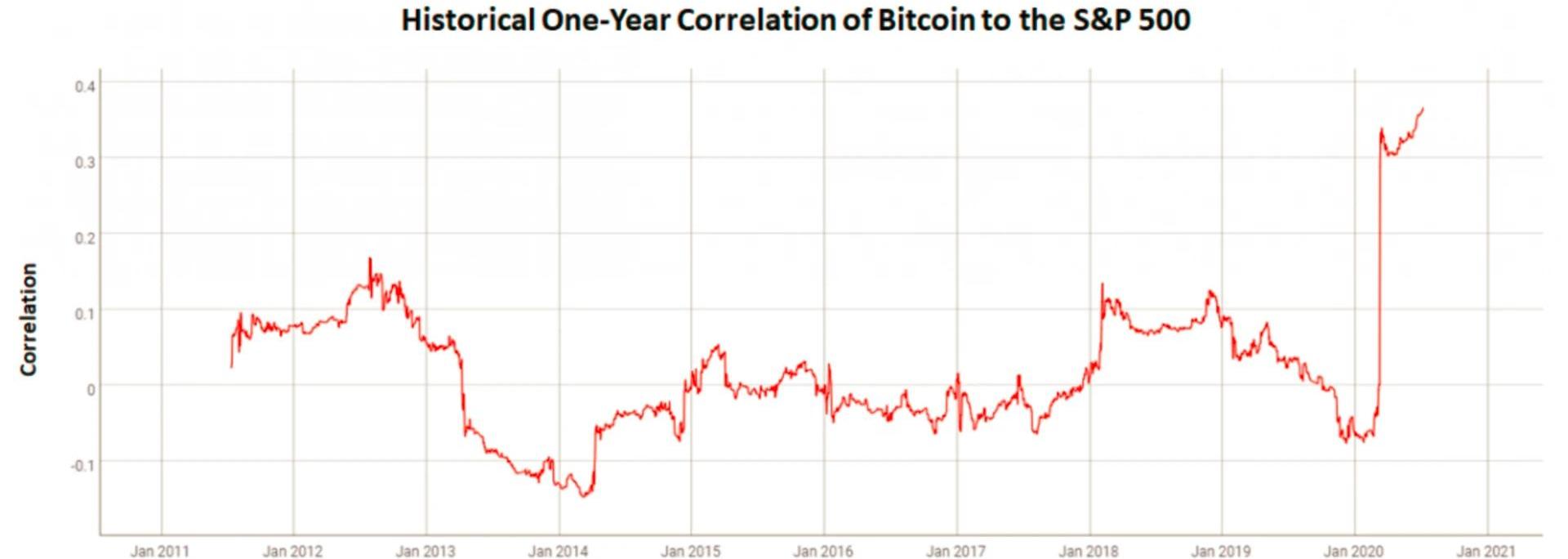 3、比特幣與標普500指數的一年期關聯性創歷史新高據Coindesk7月11日消息,由于比特幣與傳統金融市場同步交易,比特幣與標準普爾500指數的一年期關聯度創下歷史新高。根據CoinMetrics的數據,兩種資產之間的相關性在7月9日達到0.367,高于1月1日的-0.06。兩者的相關性在過去三個連續交易日中創造了歷史新高。比特幣與標普500指數關聯性越高,說明機構參與加密貨幣市場的程度越深。今年312以來,大量機構投資者通過灰度信托這樣的通道購買比特幣信托,同時越來越多投資者開始參與美股指數與加密市場的套利,也是標普500指數與比特幣價格關聯性增加的重要原因。