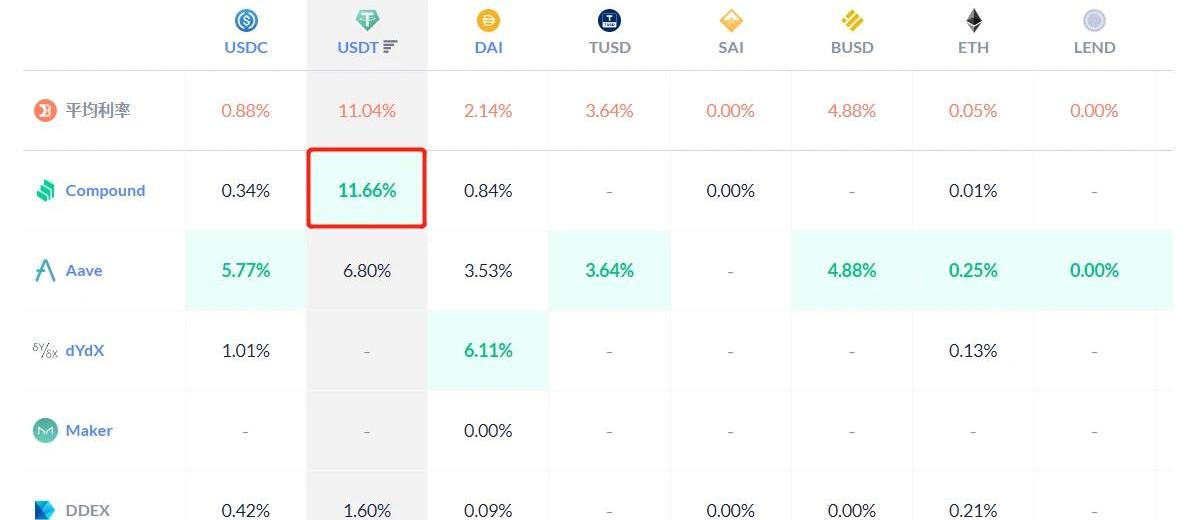 這個活動很像FCoin交易所的交易即挖礦模式,當COMP的價格越高,用戶存錢和借錢的動機就越強,以目前的情況來看,用戶在Compound上借錢,不但不需要花錢,而且還能賺錢,目前Compound上USDT的利率已經高達11.66%。我們暫且不談Compound這種模式到底可以持續多久,因為不管它持續多久,是否會崩盤,它都已經將大部分人的目光吸引至此,每一次經濟模式的創新都會帶來大量新用戶,無論是投資者還是投機者,都需要迫切的看到一個有可能造成顛覆的產品形式出現,現在是Compound,未來有可能是尚未發幣的各個DEX平臺,牛市啟動的信號之一往往都是先有一個特別好的概念得到了眾多項目的模仿與競爭。結語