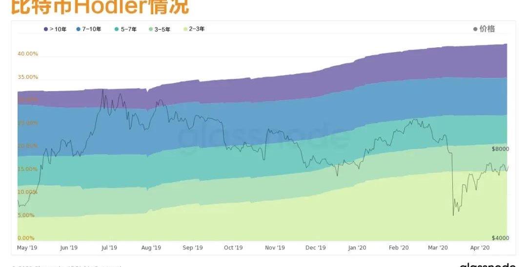 目前,至少兩年沒移動過的BTC數量占總量的42.83%,這比去年增加了10.4%。即便今年3月出現了史上最大的市場崩盤,長期持有者的信心基本沒有受到比特幣價格下跌的影響。