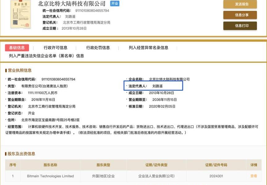 這已不是詹克團第一次試圖用法律手段奪權。去年10月,吳忌寒取代詹克團成為北京比特的法定代表人,并解除了對方在公司的一切職務。之后,詹克團曾因不服海淀區市場監督管理局作出的工商變更登記決策,向海淀區人民法院提起過行政訴訟。根據北京法院審判信息網的公示,詹克團于去年11月14日提出撤訴。撤訴之前詹又申請了行政復議。從目前工商信息看,北京比特的法定代表人尚未變更。從《公司法》賦予企業自設公司章程的權利看,詹想要重回權力巔峰,還需股權優勢。企查查信息顯示,北京比特是比特大陸香港主體BitmainTechnologiesLimited的全資控股公司。也就是說,北京比特的唯一股東是香港比特。