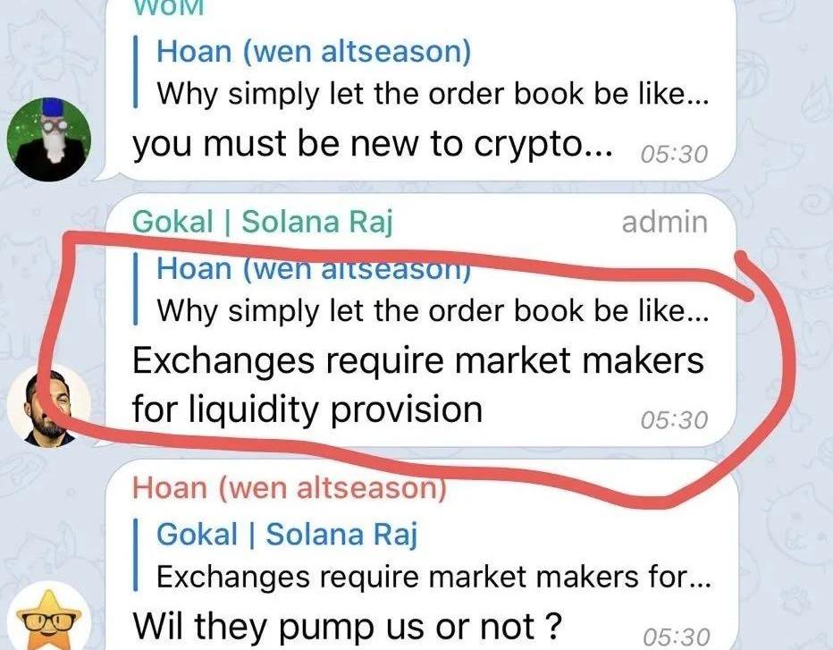 事件發生后,投資者們開始在電報群中開始“問責”,質問項目方為何不把做市代幣計入流通盤?為何隱瞞1100萬做市代幣流通盤?Solana的鎖倉和釋放機制是如何設計的?以及團隊為何要拿出這么高的代幣額度去做市?SolanaCOORajGokal在電報群中的一句話讓討論集中到了幣安上,4月28日上午,Raj公開在“SOLTraders”電報群中表示,1100萬做市代幣的做法是因為幣安要求他們在上線交易所時必須提供交易流動性。