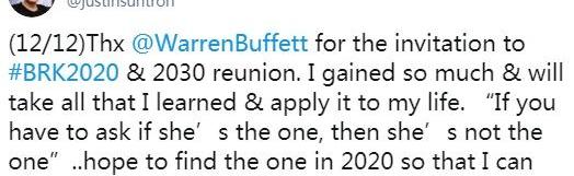 孫宇說道,感謝巴菲特邀請我參加BRK2020&2030團聚,我學到了很多,并會將這些全部用于生活。「當你猶豫她到底是不是你的唯一的那一刻,她已經不是你的唯一了」孫宇晨最后希望能在2020年找到自己的唯一!