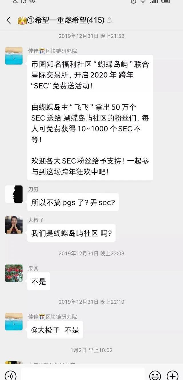 通過上圖我們可以看到,JackHuang不斷在他的朋友圈宣傳,甚至附上和PGS類似的幣價暴漲的項目以吸引投資者的加入。這讓我們不禁疑問,難道JackHuang轉戰交易所領域了嗎?這對圈子內來說,的確可以算的上一個大新聞。因為他每到一處,總是能玩出一些新花樣,造出一些新名詞。JackHuang應該可以算作是幣圈“賈躍亭”了吧,這個稱呼沒有任何褒貶之意,純粹是對于黃老板造風造夢的類比罷了。貝數區塊鏈經過深挖了解到,早在2019年12月,StarEX星際交易所在開盤前就在各個社區群說是EKT多鏈星球自己的交易所。