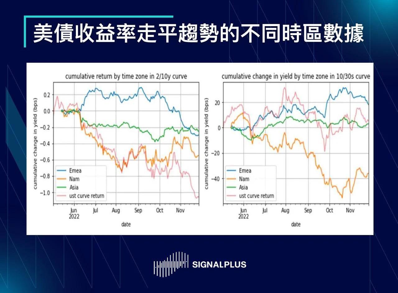 本周影響利率市場的重頭戲要從周三才開始,當前市場參與者仍普遍認為美聯儲會繼續加息導致經濟進入放緩階段,且利率市場也反映了這一預期,堅守走平趨勢;相反地,股市對于加息腳步即將放緩似乎已經感到十分滿意,這也反映在股市價格的反彈上,即使放緩加息速度可能意味著利率會升至更高水平且會在高點維持更久。從不同時區的分析數據來看,美債2/10年期收益率走平趨勢似乎是由歐洲時區的投資者主導,而美國時區的投資者則更偏好更長天期的10/30年期收益率倉位。