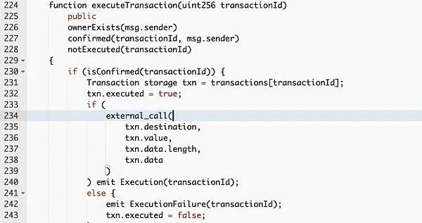 ③在接下來的攻擊中,MultiSigWallet合約所有者的MultiSigWallet調用函數confirmTransaction,其中輸入的交易ID為21106。