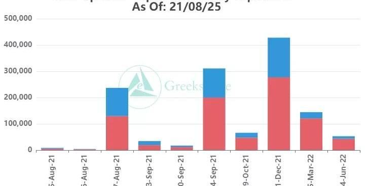 8月期限期權持倉約3.7萬幣,9月期權持倉4.87萬幣。