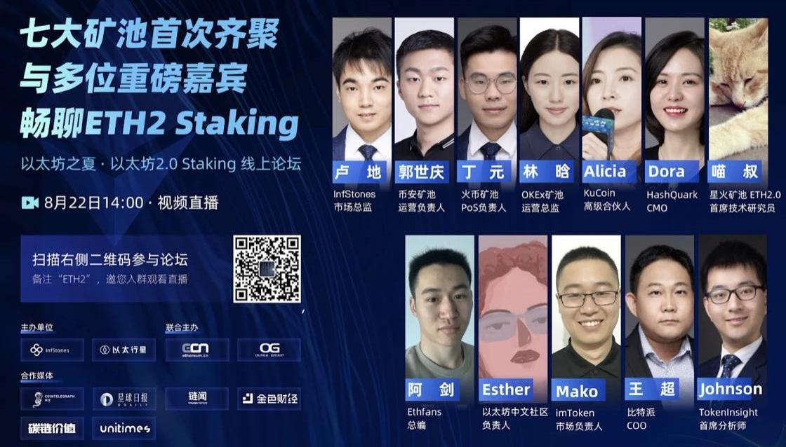 8月22日,由InfStones與以太行星主辦的以太坊之夏·以太坊2.0Staking線上論壇圓滿舉行。本次活動采用線上直播的形式,嘉賓匯聚了來自InfStones、幣安礦池、火幣礦池、OKEx礦池、星火礦池、KuCoin、HashQuark、imToken、比特派、TokenInsight、Ethfans、ECN以太坊中文社區等機構的一眾業界大咖參與,與大家一起共聊以太坊2.0Staking相關話題。