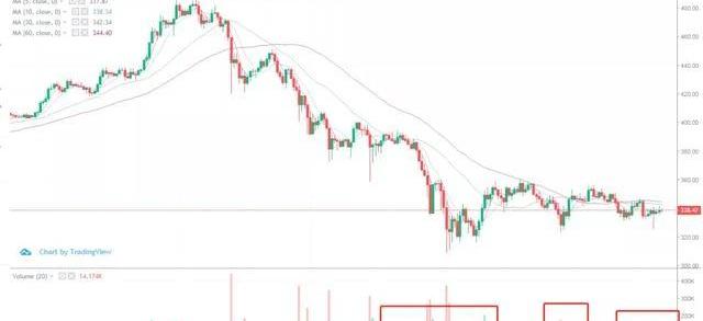 調整尾部開始縮量,說明市場觀望情緒開始變濃,變盤的臨近點要臨近了。這個位置買入,盈虧比合算,值得小幅度地試著建倉。可以貼著318-330左右建倉,縮量不要動,急速往下加倉,拉升建倉不要動。